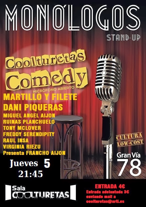 OcioS.O.S Madrid: JUEVES DE MONÓLOGOS LOW COST EN COOLTURETAS COMEDY 5 DICIEMBRE 2013